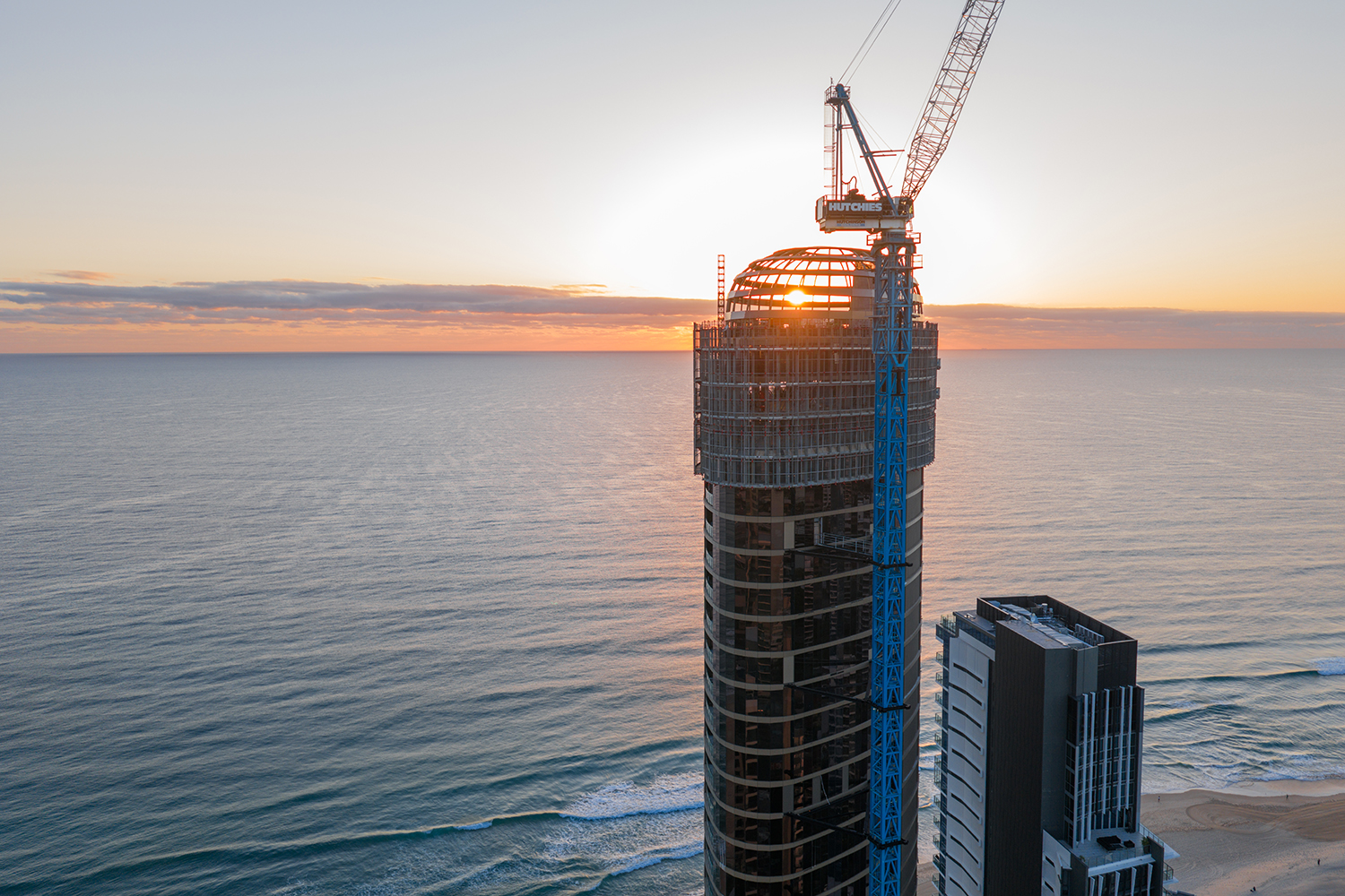Royale Gold Coast has reached two significant milestones in its construction journey, with the landmark absolute beachfront tower now officially topped out and its signature architectural Crown fully installed.