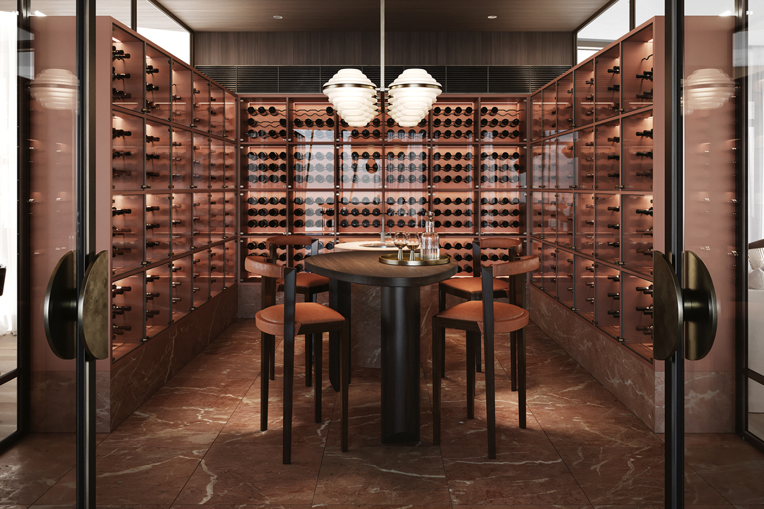 The entire 560sqm floor plate on Level 1 is dedicated to Club Royale for residents to use as an extension of their home, with a formal 14-seat dining room that opens out to a terrace overlooking the beach, a Cuccina Chef commercial kitchen, teppanyaki bar, executive lounge and entertainer’s balcony, a marble feature bar and an oversized cellar room offering chilled individual wine racks and whiskey lockers for residents to purchase for the secure storage and display of their fine wines and liquors.